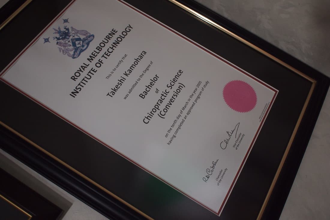 ロイヤルメルボルン大学(日本校)にてカイロプラクティックの学位を取得。
